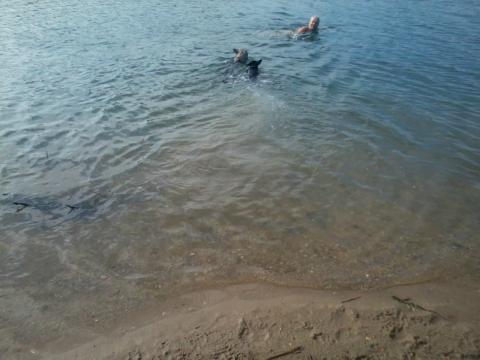 Liebe Familie Rupp, anbei  herrliche Aufnahmen von unserem Powerpaket.  Wenn es ans Wasser geht, wird Hilary zur Wasserratte, wie man sehen kann. Da spritzt das Wasser nur so hoch, es kann nicht wild genug zugehen. Manchmal gibt es aber auch ein paar besinnliche Minuten, wenn sie  irgendwas beobachtet. Und beim Schwimmen ist Hilary wie ein Schnellboot. Hätte bei der Olympiade gut Chancen gehabt auf Gold. Viele liebe Grüße aus Leipzig von Hilary und dem Rudel SchulzEintrag 11