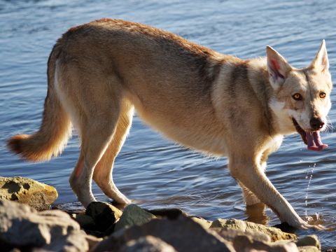 Rasse: Saarloos Wolfhond Schulterhöhe/ Gewicht: 72cm/ 35kg Elterntiere: Glaz Go Gandalf de Louba Tar X Faiken Atomic de Louba Tar HD: HD B - Ubergangsform DM: DM N/N - frei Augenuntersuchung am 23.08.2013 nach Doc Kreis frei von allen Augenkrankheiten Charaktereigenschaften: Braucht ihre Zeit bis sie auftaut, lässt sich dann streicheln ist sehr auf die Familie fixiert Besitzer: Fam.Rupp/ Email: saarloosofmarxdorf@t-online.de